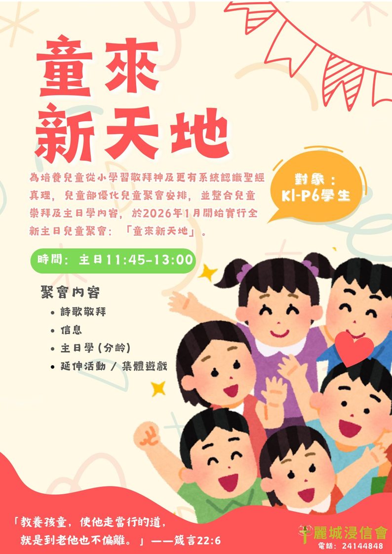 如有意參與,歡迎於主日時間親臨本會;查詢請致電 2414 4848 。